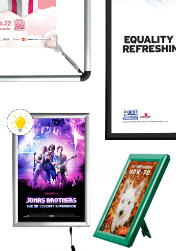 • Recommended poster material is paper, any heavier material such as vinyl or textile may damage the springs at the corner.