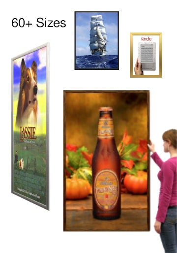 Window Snap Frame Sizes include; 8.5 x 11 Frame, 11x17 Frame, 22x28 Frame, and 30x40 Frame. Snap Open Snap Open Frame Sizes come in Black Snap Frame and Silver Snap Frame Finishes. Buy Snap Frames online or Call for More Info or Quote.